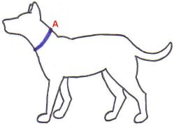 Halsumfang A dort messen, wo das Halsband sitzen soll.